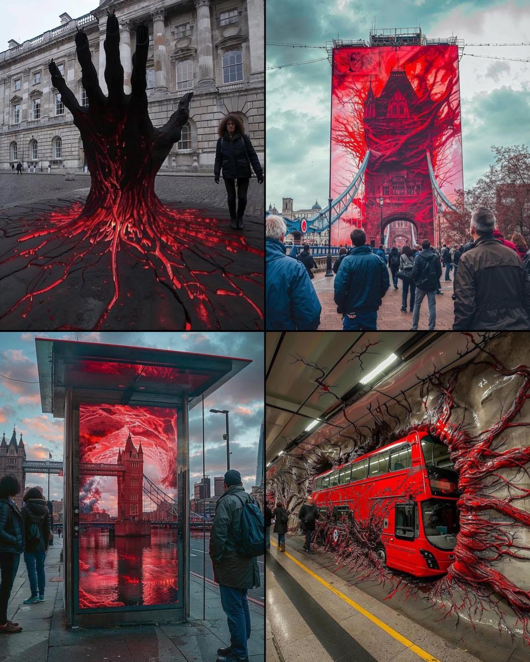 London was the first major breach. Overnight, billboards began glitching in real time. Screens flickered as if a signal were breaking, then shifted into eerie red portals that looked straight out of the Upside Down. Posters were hung upside down. Cracks appeared in walls as though something underneath was trying to break through. Red light washed over familiar stations and streets. For commuters, it didn’t feel like advertising. It felt like an intrusion, Hawkins leaking into the city and blurring the line between fiction and reality.